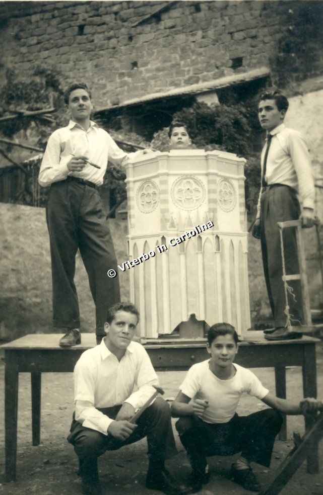 Viterbo, 1951: si costruisce una piccola macchina di Santa Rosa nel cortile di S. Leonardo. In basso a sinistra è Nicola Vassallo