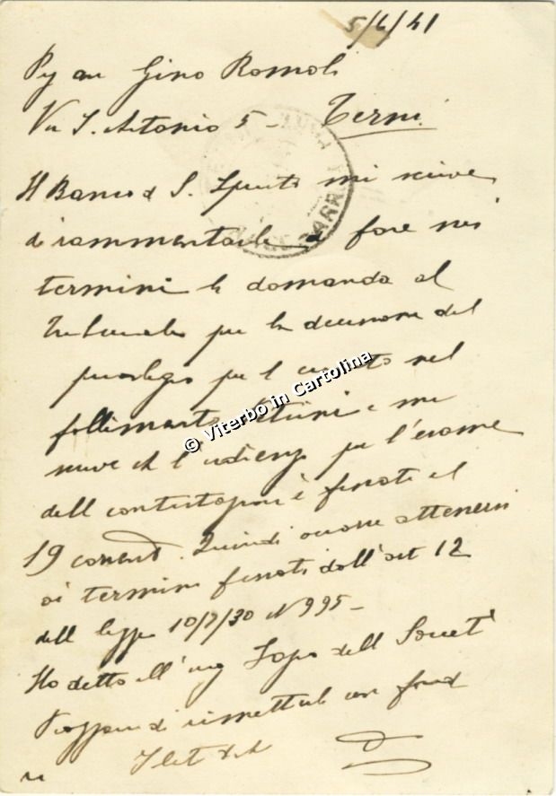 Viterbo - Avv. Luigi Grispigni - viaggiata nel 1941